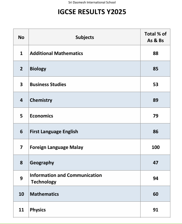 Sri Dasmesh International School recorded exceptional performances in the 2025 Cambridge Primary Checkpoint and IGCSE Examinations.
